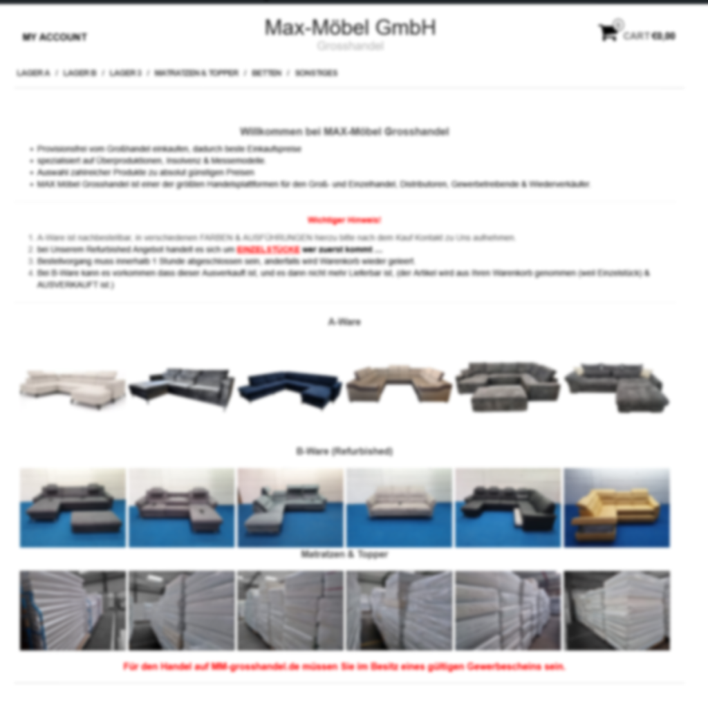 Als eine der größten Handelsplattformen für Groß- und Einzelhändler, Distributoren, Gewerbetreibende und Wiederverkäufer steht MAX Möbel Großhandel für Qualität, Vielfalt und Wirtschaftlichkeit.